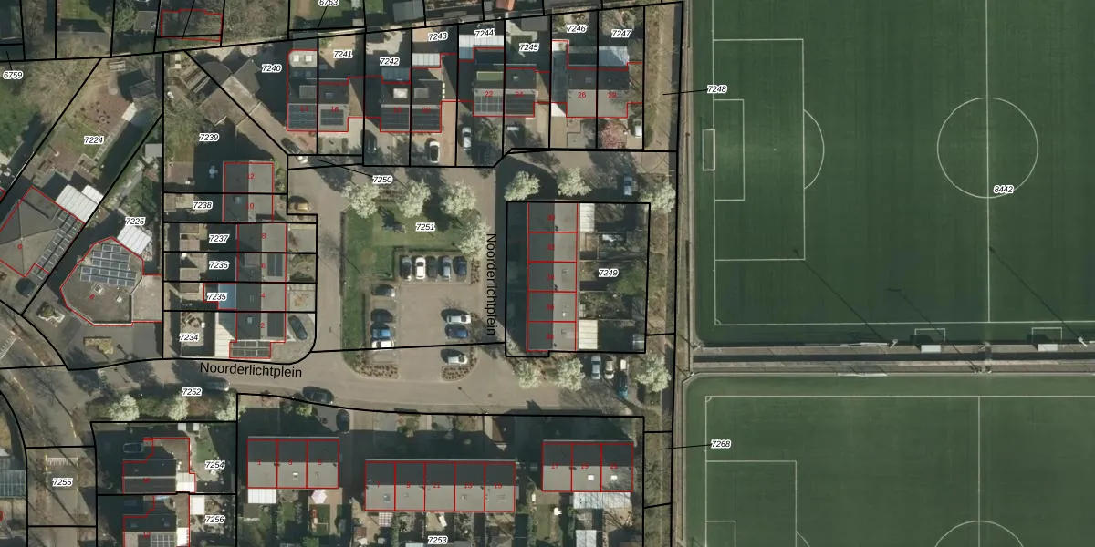 Noorderlichtplein 34 is gelegen op kadastraal perceel STD00D7249. Deze kadastrale aanduiding is uniek en wordt gebruikt door het Kadaster om eigendomsrechten en andere zakelijke rechten vast te leggen. Het perceel maakt onderdeel uit van de kadastrale gemeente Sittard.