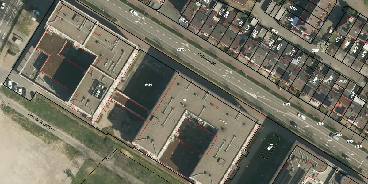 Het perceel waarop Odasingel 181 staat heeft een oppervlakte van 6340 m². Dit is een zeer groot perceel. De perceeloppervlakte wordt geregistreerd door het Kadaster. Gedetailleerde informatie over de maten van dit perceel kunt u vinden in het rapport Kadastrale kaart met maatvoering van Odasingel 181.