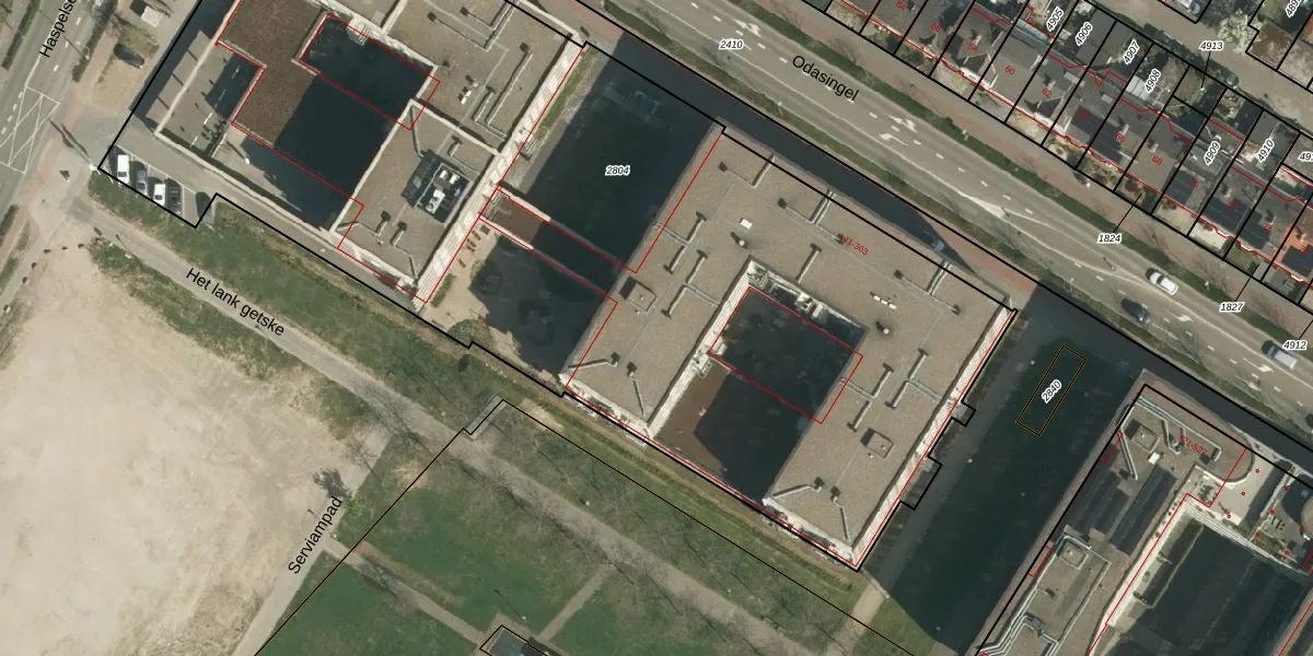 Odasingel 201 is gelegen op kadastraal perceel STD00F2804. Deze kadastrale aanduiding is uniek en wordt gebruikt door het Kadaster om eigendomsrechten en andere zakelijke rechten vast te leggen. Het perceel maakt onderdeel uit van de kadastrale gemeente Sittard.