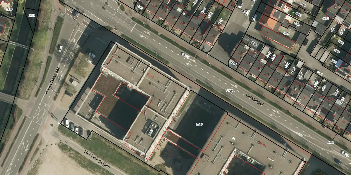 Odasingel 53 is gelegen op kadastraal perceel STD00F2804. Deze kadastrale aanduiding is uniek en wordt gebruikt door het Kadaster om eigendomsrechten en andere zakelijke rechten vast te leggen. Het perceel maakt onderdeel uit van de kadastrale gemeente Sittard.