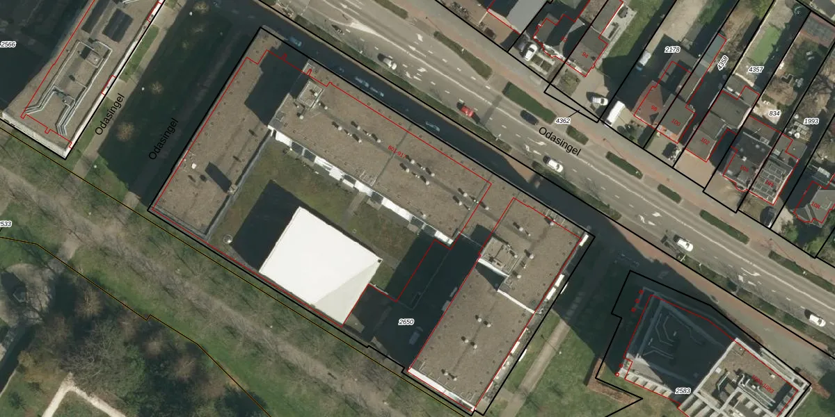Het perceel waarop Odasingel 709 staat heeft een oppervlakte van 4875 m². Dit is een zeer groot perceel. De perceeloppervlakte wordt geregistreerd door het Kadaster. Gedetailleerde informatie over de maten van dit perceel kunt u vinden in het rapport Kadastrale kaart met maatvoering van Odasingel 709.