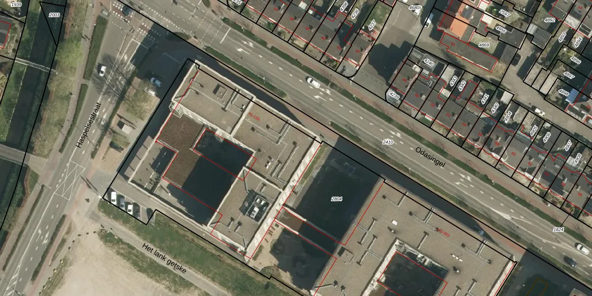 Het perceel waarop Odasingel 89 staat heeft een oppervlakte van 6340 m². Dit is een zeer groot perceel. De perceeloppervlakte wordt geregistreerd door het Kadaster. Gedetailleerde informatie over de maten van dit perceel kunt u vinden in het rapport Kadastrale kaart met maatvoering van Odasingel 89.