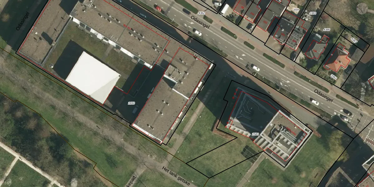 Het perceel waarop Odasingel 917 staat heeft een oppervlakte van 4875 m². Dit is een zeer groot perceel. De perceeloppervlakte wordt geregistreerd door het Kadaster. Gedetailleerde informatie over de maten van dit perceel kunt u vinden in het rapport Kadastrale kaart met maatvoering van Odasingel 917.