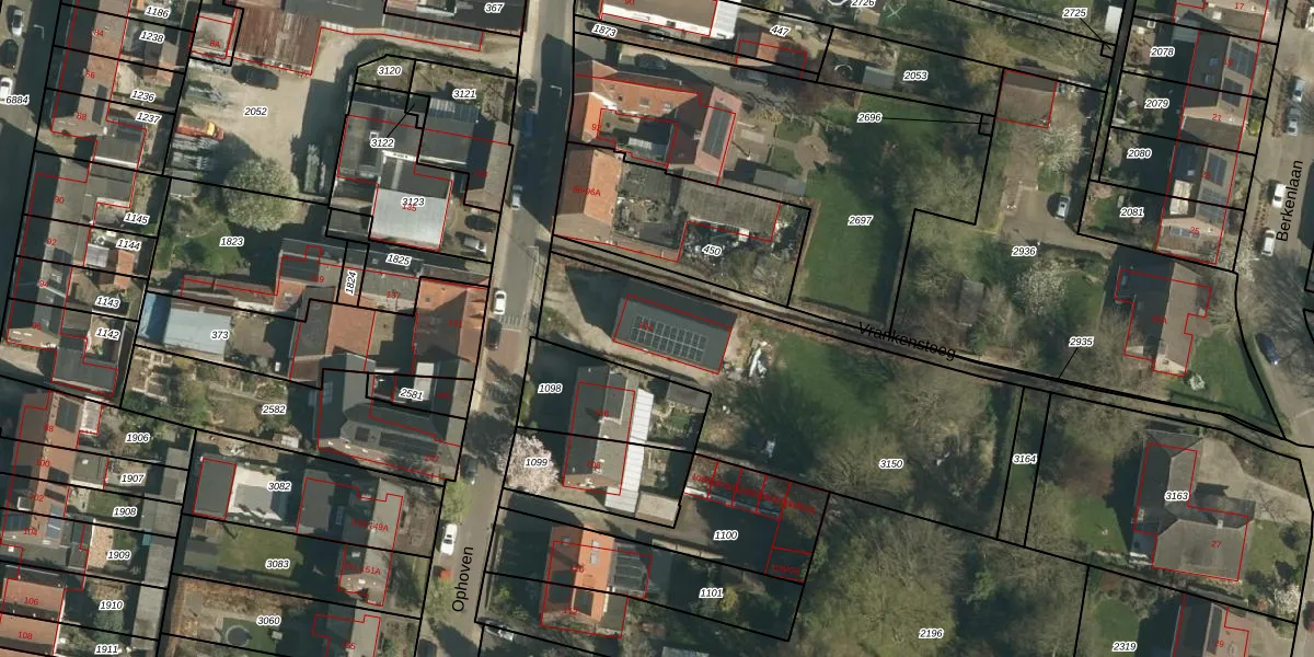 Het perceel waarop Ophoven 104 staat heeft een oppervlakte van 1466 m². Dit is een zeer groot perceel. De perceeloppervlakte wordt geregistreerd door het Kadaster. Gedetailleerde informatie over de maten van dit perceel kunt u vinden in het rapport Kadastrale kaart met maatvoering van Ophoven 104.
