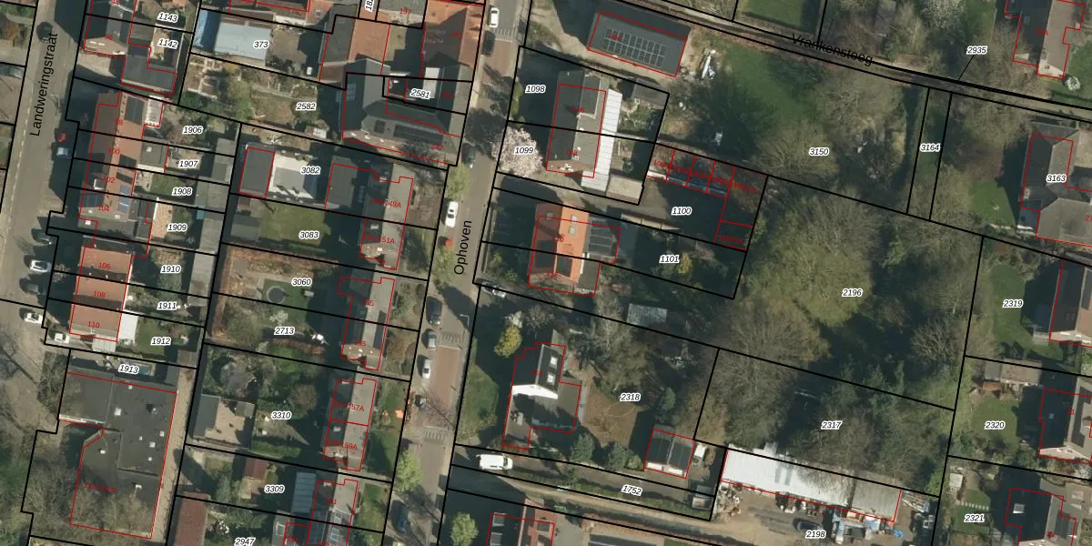 Het perceel waarop Ophoven 112 staat heeft een oppervlakte van 1815 m². Dit is een zeer groot perceel. De perceeloppervlakte wordt geregistreerd door het Kadaster. Gedetailleerde informatie over de maten van dit perceel kunt u vinden in het rapport Kadastrale kaart met maatvoering van Ophoven 112.