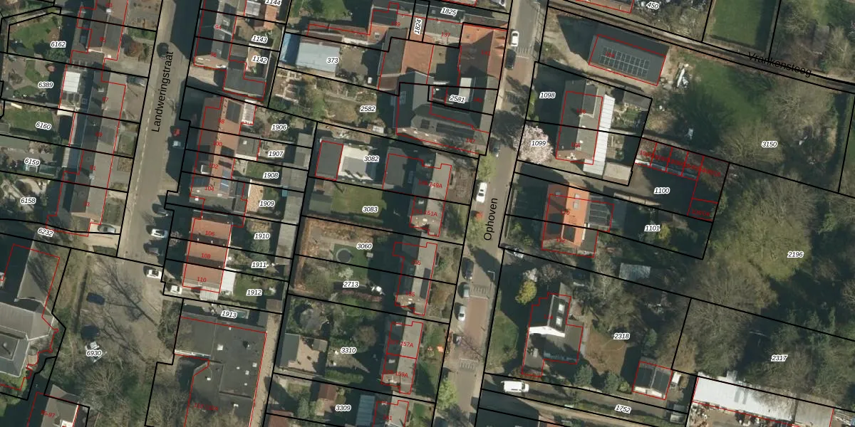 Het perceel waarop Ophoven 151 staat heeft een oppervlakte van 360 m². Dit is een groot perceel. De perceeloppervlakte wordt geregistreerd door het Kadaster. Gedetailleerde informatie over de maten van dit perceel kunt u vinden in het rapport Kadastrale kaart met maatvoering van Ophoven 151.