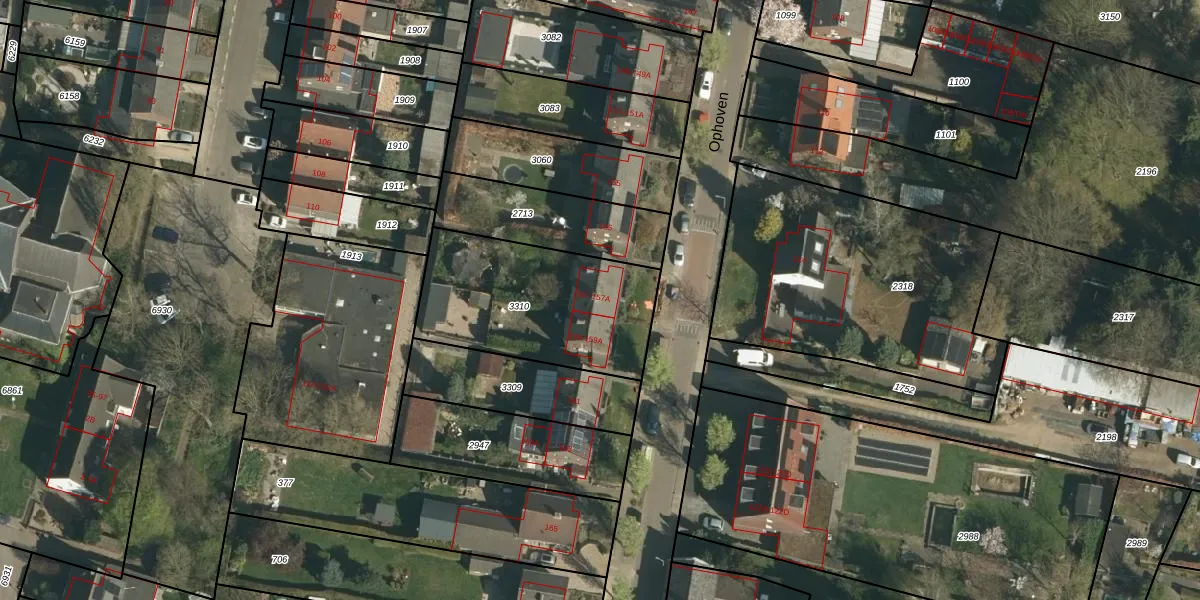 Het perceel waarop Ophoven 157 staat heeft een oppervlakte van 726 m². Dit is een groot perceel. De perceeloppervlakte wordt geregistreerd door het Kadaster. Gedetailleerde informatie over de maten van dit perceel kunt u vinden in het rapport Kadastrale kaart met maatvoering van Ophoven 157.