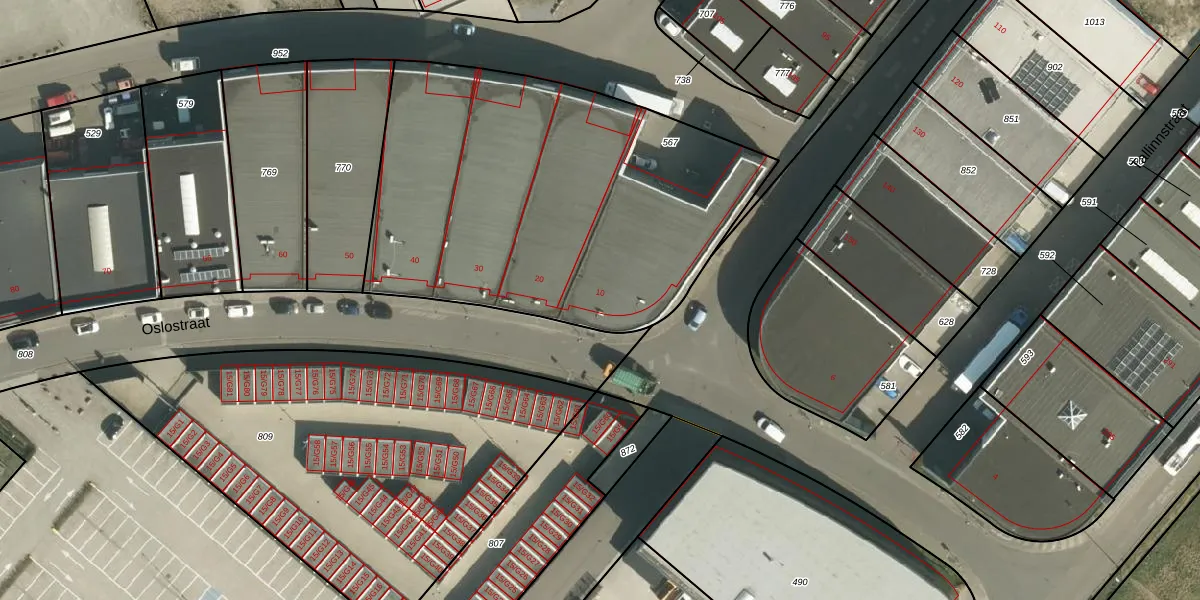 Het perceel waarop Oslostraat 10 staat heeft een oppervlakte van 2193 m². Dit is een zeer groot perceel. De perceeloppervlakte wordt geregistreerd door het Kadaster. Gedetailleerde informatie over de maten van dit perceel kunt u vinden in het rapport Kadastrale kaart met maatvoering van Oslostraat 10.
