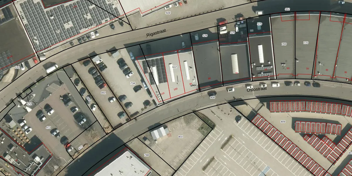 Oslostraat 100 is gelegen op kadastraal perceel STD00M622. Deze kadastrale aanduiding is uniek en wordt gebruikt door het Kadaster om eigendomsrechten en andere zakelijke rechten vast te leggen. Het perceel maakt onderdeel uit van de kadastrale gemeente Sittard.