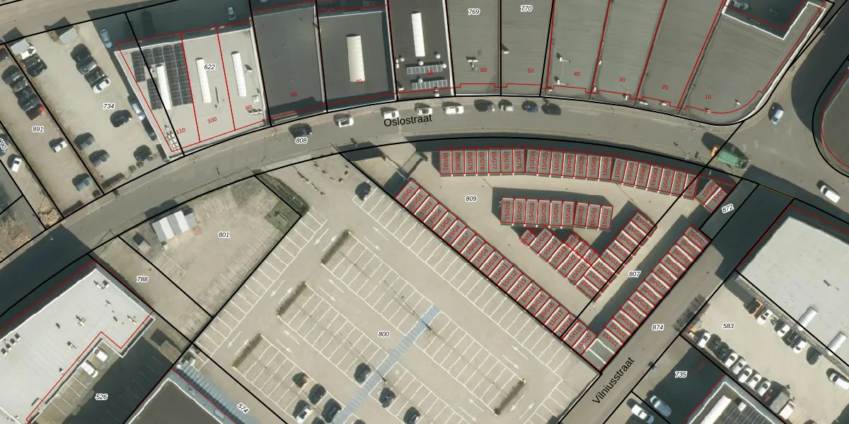 Het perceel waarop Oslostraat 15-G3 staat heeft een oppervlakte van 2087 m². Dit is een zeer groot perceel. De perceeloppervlakte wordt geregistreerd door het Kadaster. Gedetailleerde informatie over de maten van dit perceel kunt u vinden in het rapport Kadastrale kaart met maatvoering van Oslostraat 15-G3.