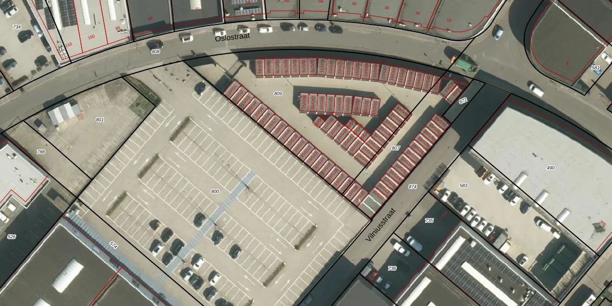 Het perceel waarop Oslostraat 15-G12 staat heeft een oppervlakte van 2087 m². Dit is een zeer groot perceel. De perceeloppervlakte wordt geregistreerd door het Kadaster. Gedetailleerde informatie over de maten van dit perceel kunt u vinden in het rapport Kadastrale kaart met maatvoering van Oslostraat 15-G12.