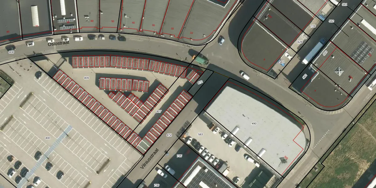 Het perceel waarop Oslostraat 15-G32 staat heeft een oppervlakte van 630 m². Dit is een groot perceel. De perceeloppervlakte wordt geregistreerd door het Kadaster. Gedetailleerde informatie over de maten van dit perceel kunt u vinden in het rapport Kadastrale kaart met maatvoering van Oslostraat 15-G32.