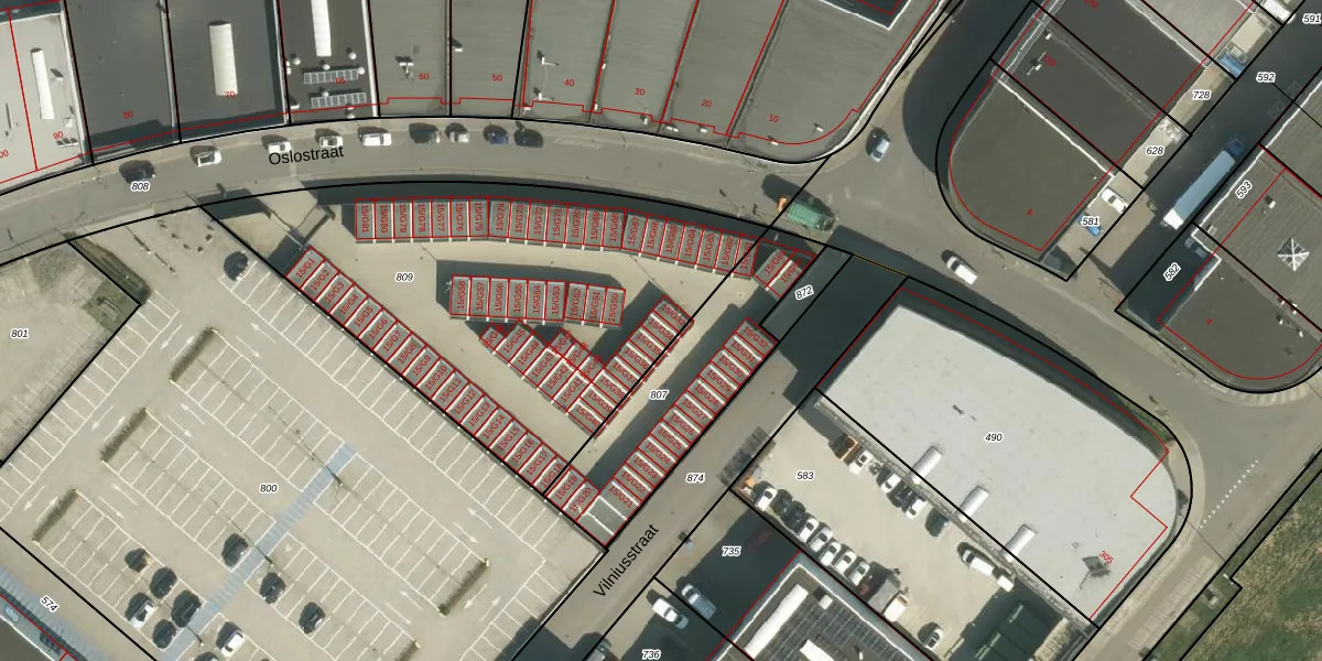 Het perceel waarop Oslostraat 15-G34 staat heeft een oppervlakte van 2087 m². Dit is een zeer groot perceel. De perceeloppervlakte wordt geregistreerd door het Kadaster. Gedetailleerde informatie over de maten van dit perceel kunt u vinden in het rapport Kadastrale kaart met maatvoering van Oslostraat 15-G34.