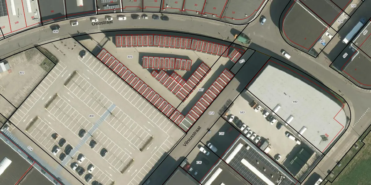 Het perceel waarop Oslostraat 15-G39 staat heeft een oppervlakte van 2087 m². Dit is een zeer groot perceel. De perceeloppervlakte wordt geregistreerd door het Kadaster. Gedetailleerde informatie over de maten van dit perceel kunt u vinden in het rapport Kadastrale kaart met maatvoering van Oslostraat 15-G39.