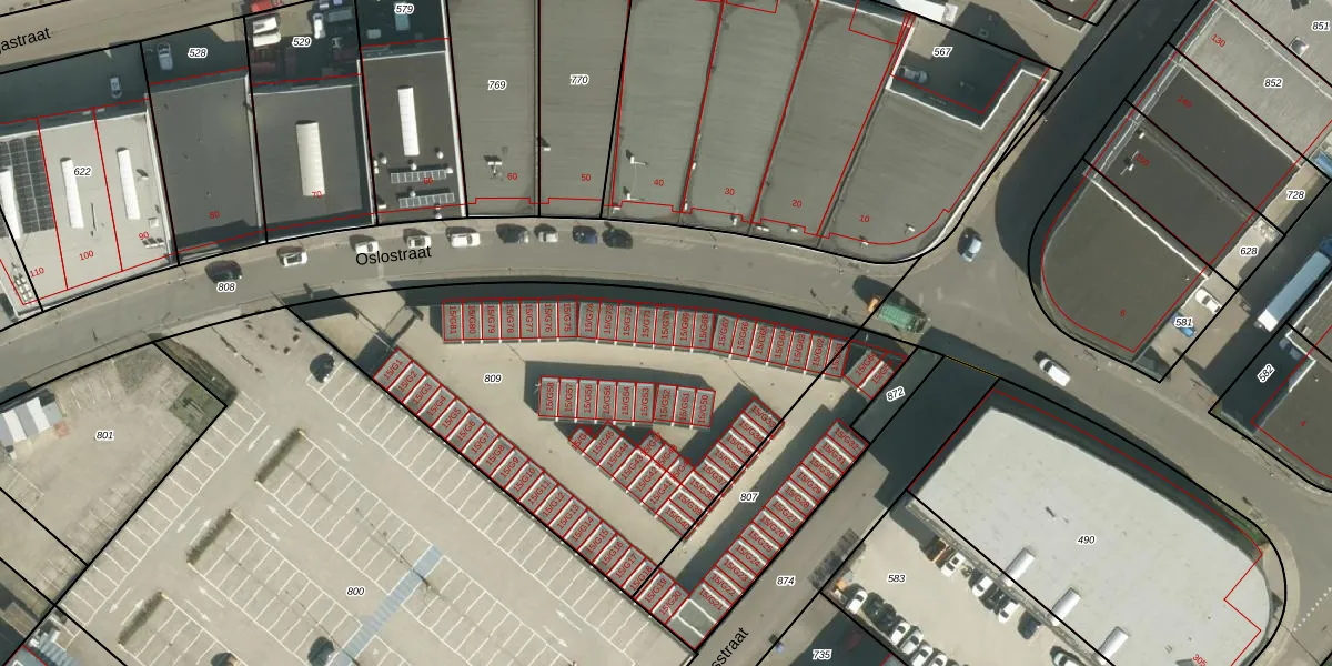 Het perceel waarop Oslostraat 15-G70 staat heeft een oppervlakte van 2087 m². Dit is een zeer groot perceel. De perceeloppervlakte wordt geregistreerd door het Kadaster. Gedetailleerde informatie over de maten van dit perceel kunt u vinden in het rapport Kadastrale kaart met maatvoering van Oslostraat 15-G70.