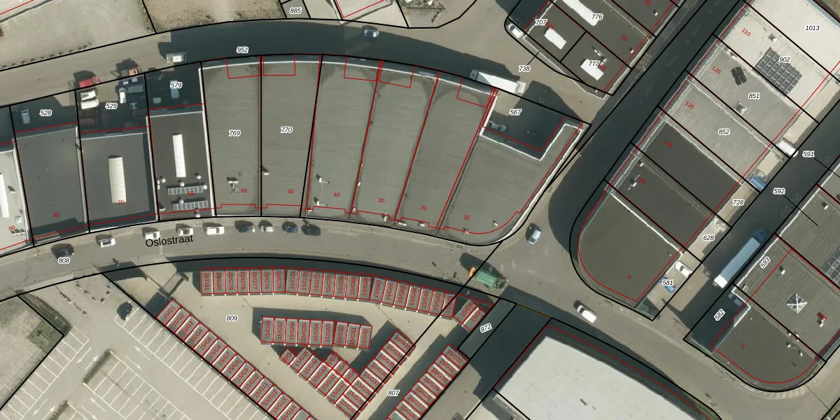 Het perceel waarop Oslostraat 20 staat heeft een oppervlakte van 2193 m². Dit is een zeer groot perceel. De perceeloppervlakte wordt geregistreerd door het Kadaster. Gedetailleerde informatie over de maten van dit perceel kunt u vinden in het rapport Kadastrale kaart met maatvoering van Oslostraat 20.