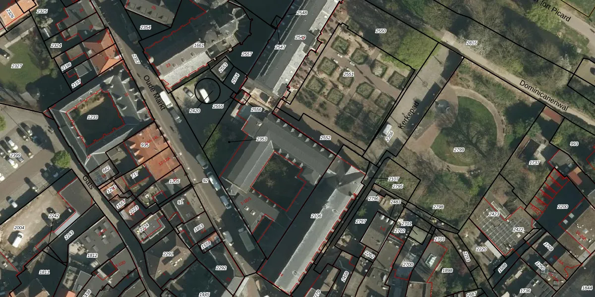 Het perceel waarop Oude Markt 1-D-2 staat heeft een oppervlakte van 1909 m². Dit is een zeer groot perceel. De perceeloppervlakte wordt geregistreerd door het Kadaster. Gedetailleerde informatie over de maten van dit perceel kunt u vinden in het rapport Kadastrale kaart met maatvoering van Oude Markt 1-D-2.