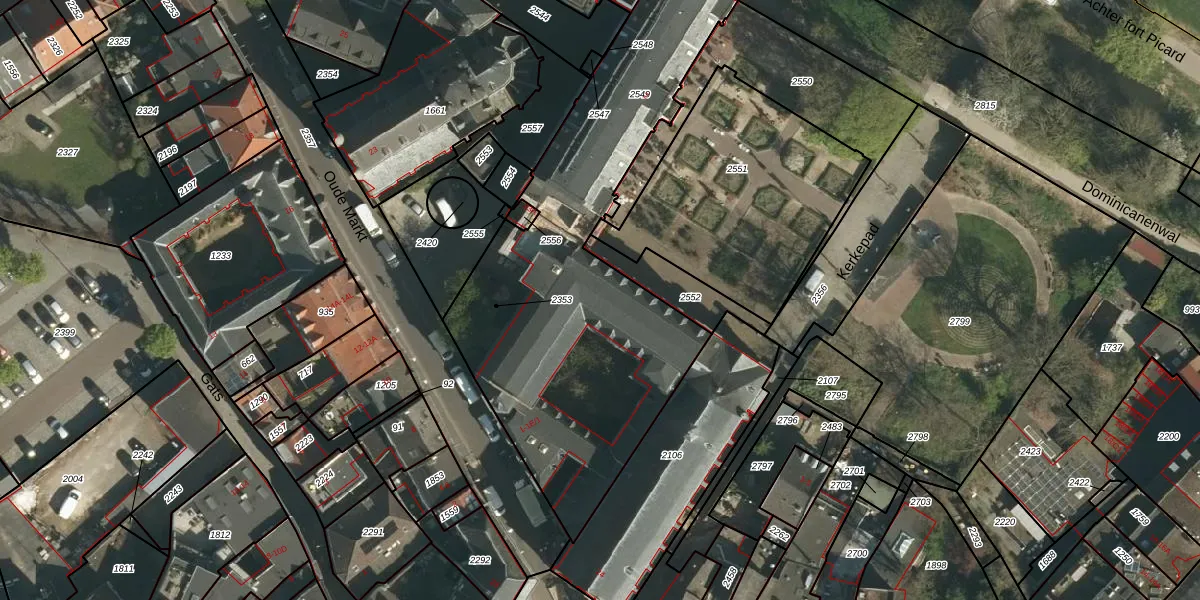 Het perceel waarop Oude Markt 1-D-3 staat heeft een oppervlakte van 1909 m². Dit is een zeer groot perceel. De perceeloppervlakte wordt geregistreerd door het Kadaster. Gedetailleerde informatie over de maten van dit perceel kunt u vinden in het rapport Kadastrale kaart met maatvoering van Oude Markt 1-D-3.