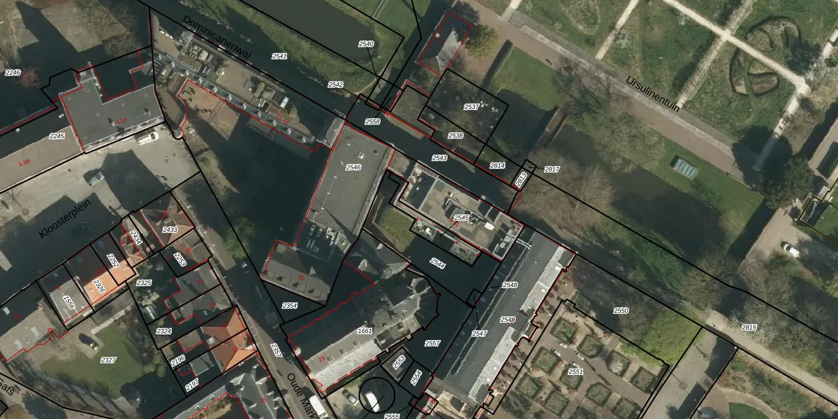 Het perceel waarop Oude Markt 11 staat heeft een oppervlakte van 2358 m². Dit is een zeer groot perceel. De perceeloppervlakte wordt geregistreerd door het Kadaster. Gedetailleerde informatie over de maten van dit perceel kunt u vinden in het rapport Kadastrale kaart met maatvoering van Oude Markt 11.