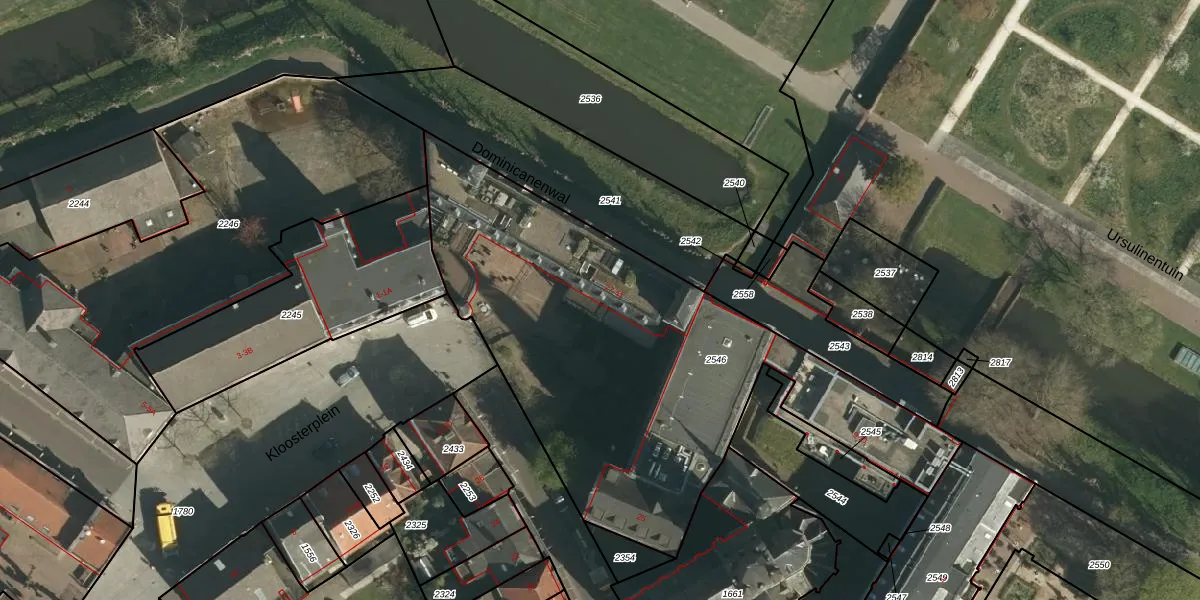 Het perceel waarop Oude Markt 27 staat heeft een oppervlakte van 2358 m². Dit is een zeer groot perceel. De perceeloppervlakte wordt geregistreerd door het Kadaster. Gedetailleerde informatie over de maten van dit perceel kunt u vinden in het rapport Kadastrale kaart met maatvoering van Oude Markt 27.
