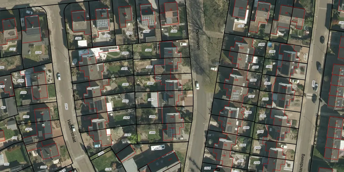 Het perceel waarop Overhoven 122 staat heeft een oppervlakte van 319 m². Dit is een groot perceel. De perceeloppervlakte wordt geregistreerd door het Kadaster. Gedetailleerde informatie over de maten van dit perceel kunt u vinden in het rapport Kadastrale kaart met maatvoering van Overhoven 122.