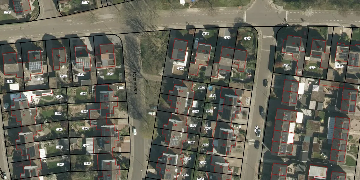 Overhoven 153 is gelegen op kadastraal perceel STD00K1984. Deze kadastrale aanduiding is uniek en wordt gebruikt door het Kadaster om eigendomsrechten en andere zakelijke rechten vast te leggen. Het perceel maakt onderdeel uit van de kadastrale gemeente Sittard.