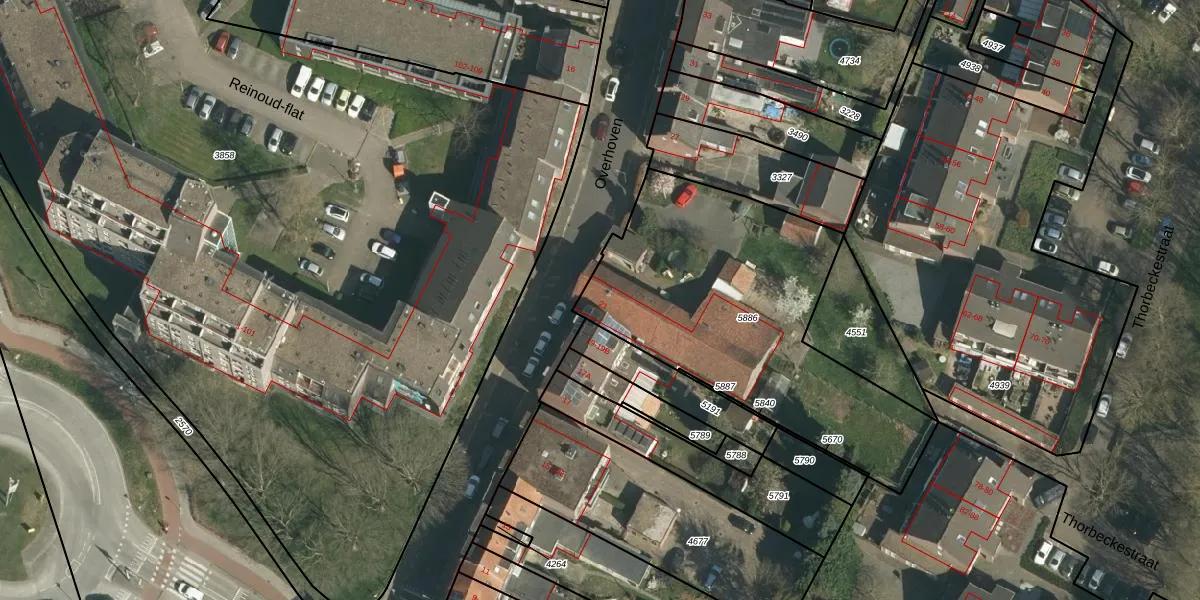 Gebruik de zoekbalk of klik op een perceel voor informatie over de adressen binnen dit perceel.