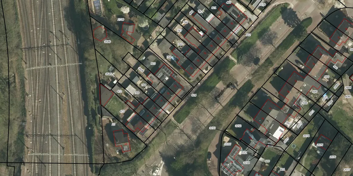 Het perceel waarop Parallelweg 12 staat heeft een oppervlakte van 326 m². Dit is een groot perceel. De perceeloppervlakte wordt geregistreerd door het Kadaster. Gedetailleerde informatie over de maten van dit perceel kunt u vinden in het rapport Kadastrale kaart met maatvoering van Parallelweg 12.