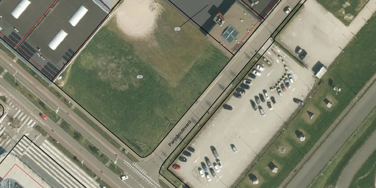 Het perceel waarop Parijsboulevard 393 staat heeft een oppervlakte van 4716 m². Dit is een zeer groot perceel. De perceeloppervlakte wordt geregistreerd door het Kadaster. Gedetailleerde informatie over de maten van dit perceel kunt u vinden in het rapport Kadastrale kaart met maatvoering van Parijsboulevard 393.