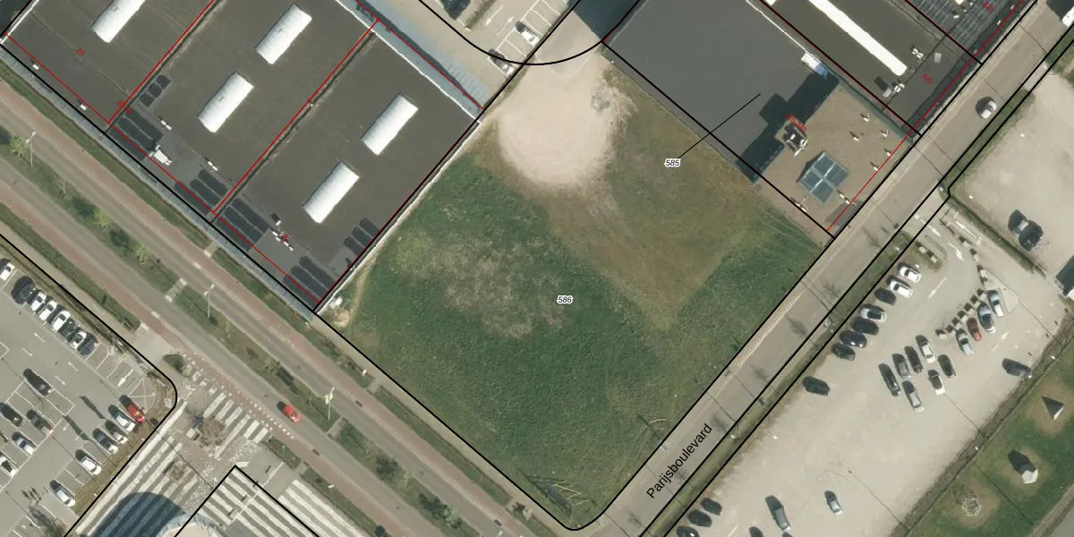 Het perceel waarop Parijsboulevard 407 staat heeft een oppervlakte van 4716 m². Dit is een zeer groot perceel. De perceeloppervlakte wordt geregistreerd door het Kadaster. Gedetailleerde informatie over de maten van dit perceel kunt u vinden in het rapport Kadastrale kaart met maatvoering van Parijsboulevard 407.