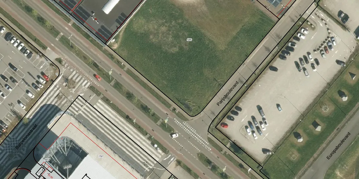 Het perceel waarop Parijsboulevard 429 staat heeft een oppervlakte van 4716 m². Dit is een zeer groot perceel. De perceeloppervlakte wordt geregistreerd door het Kadaster. Gedetailleerde informatie over de maten van dit perceel kunt u vinden in het rapport Kadastrale kaart met maatvoering van Parijsboulevard 429.