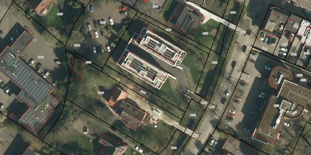 Het perceel waarop Parklaan 19-D staat heeft een oppervlakte van 2255 m². Dit is een zeer groot perceel. De perceeloppervlakte wordt geregistreerd door het Kadaster. Gedetailleerde informatie over de maten van dit perceel kunt u vinden in het rapport Kadastrale kaart met maatvoering van Parklaan 19-D.
