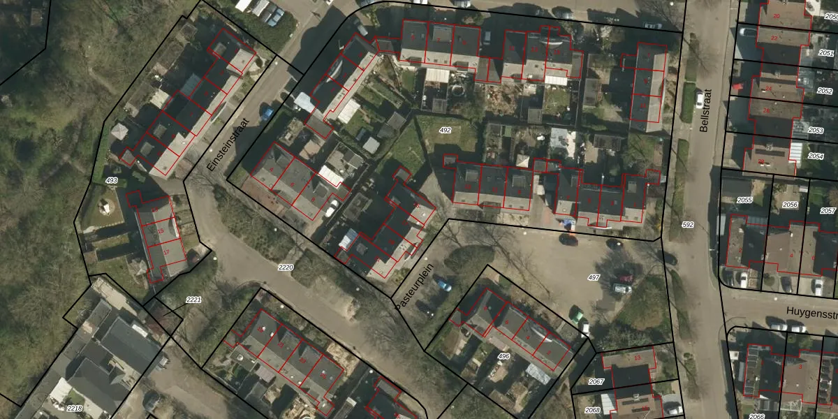 Het perceel waarop Pasteurplein 15 staat heeft een oppervlakte van 5070 m². Dit is een zeer groot perceel. De perceeloppervlakte wordt geregistreerd door het Kadaster. Gedetailleerde informatie over de maten van dit perceel kunt u vinden in het rapport Kadastrale kaart met maatvoering van Pasteurplein 15.