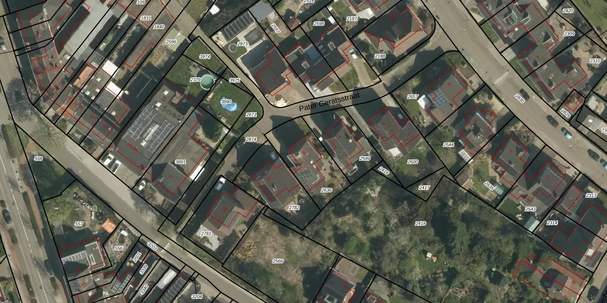 Pater Geratsstraat 8 is gelegen op kadastraal perceel STD00K2636. Deze kadastrale aanduiding is uniek en wordt gebruikt door het Kadaster om eigendomsrechten en andere zakelijke rechten vast te leggen. Het perceel maakt onderdeel uit van de kadastrale gemeente Sittard.