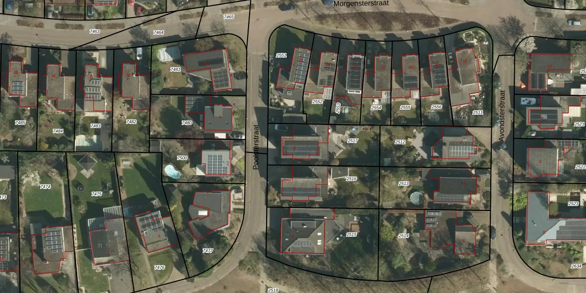 Gebruik de zoekbalk of klik op een perceel voor informatie over de adressen binnen dit perceel.