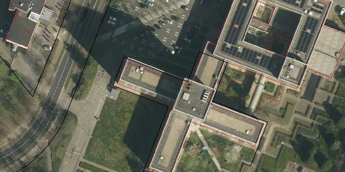 Het perceel waarop Poststraat 3-H-13 staat heeft een oppervlakte van 5175 m². Dit is een zeer groot perceel. De perceeloppervlakte wordt geregistreerd door het Kadaster. Gedetailleerde informatie over de maten van dit perceel kunt u vinden in het rapport Kadastrale kaart met maatvoering van Poststraat 3-H-13.