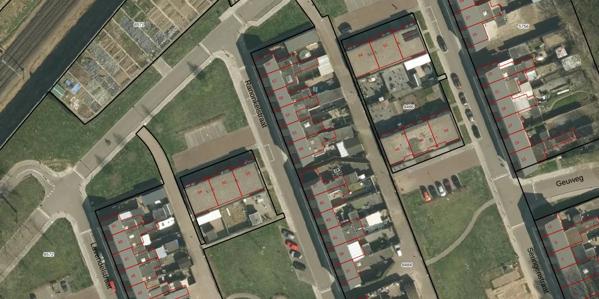 Ranonkelstraat 49 is gelegen op kadastraal perceel STD00D8484. Deze kadastrale aanduiding is uniek en wordt gebruikt door het Kadaster om eigendomsrechten en andere zakelijke rechten vast te leggen. Het perceel maakt onderdeel uit van de kadastrale gemeente Sittard.