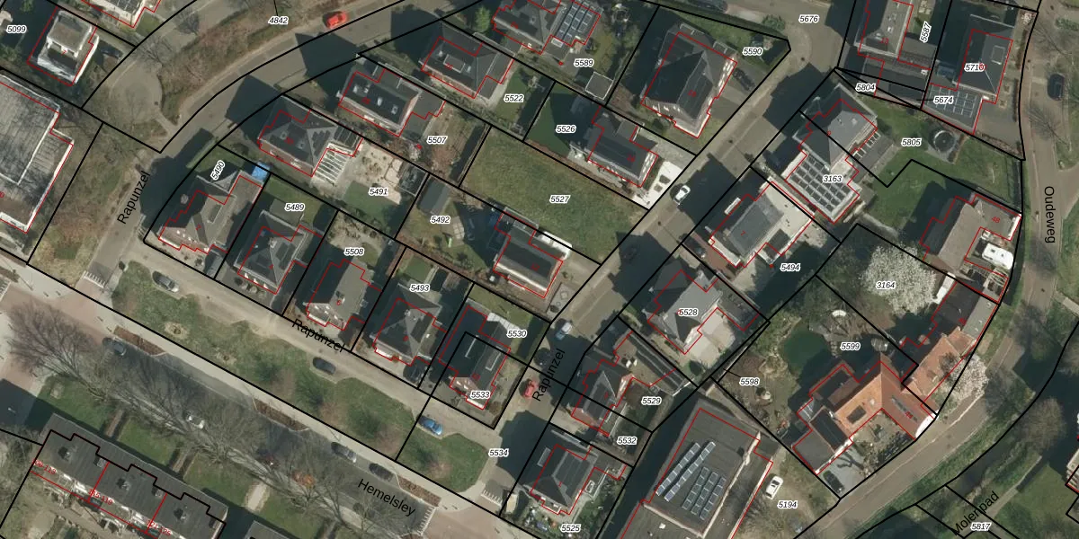 Het perceel waarop Rapunzel 12 staat heeft een oppervlakte van 480 m². Dit is een groot perceel. De perceeloppervlakte wordt geregistreerd door het Kadaster. Gedetailleerde informatie over de maten van dit perceel kunt u vinden in het rapport Kadastrale kaart met maatvoering van Rapunzel 12.
