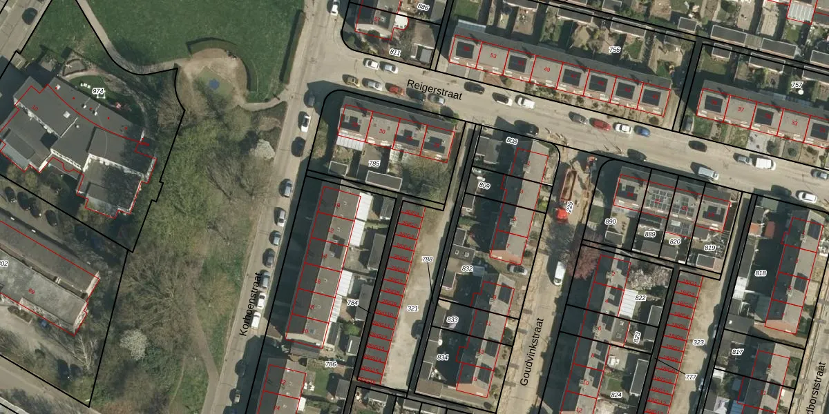 Het perceel waarop Reigerstraat 26-G1 staat heeft een oppervlakte van 620 m². Dit is een groot perceel. De perceeloppervlakte wordt geregistreerd door het Kadaster. Gedetailleerde informatie over de maten van dit perceel kunt u vinden in het rapport Kadastrale kaart met maatvoering van Reigerstraat 26-G1.