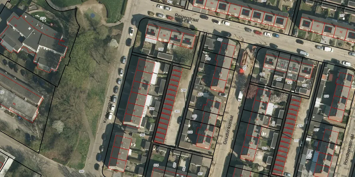 Het perceel waarop Reigerstraat 26-G5 staat heeft een oppervlakte van 620 m². Dit is een groot perceel. De perceeloppervlakte wordt geregistreerd door het Kadaster. Gedetailleerde informatie over de maten van dit perceel kunt u vinden in het rapport Kadastrale kaart met maatvoering van Reigerstraat 26-G5.