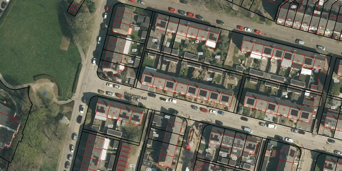 Het perceel waarop Reigerstraat 51 staat heeft een oppervlakte van 1295 m². Dit is een zeer groot perceel. De perceeloppervlakte wordt geregistreerd door het Kadaster. Gedetailleerde informatie over de maten van dit perceel kunt u vinden in het rapport Kadastrale kaart met maatvoering van Reigerstraat 51.