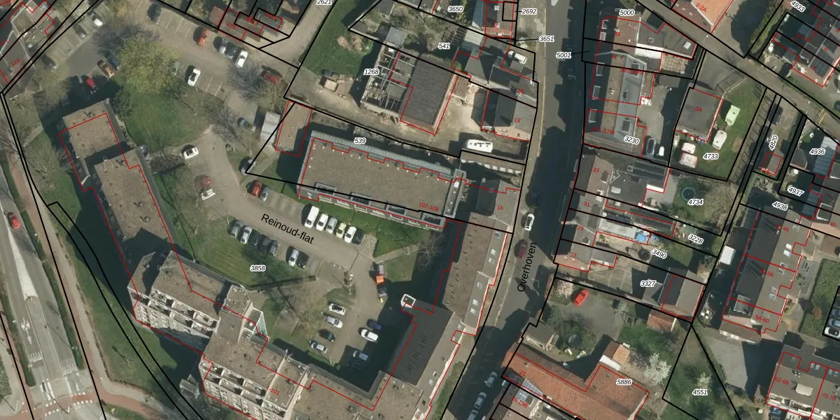 Het perceel waarop Reinoud-flat 102 staat heeft een oppervlakte van 990 m². Dit is een groot perceel. De perceeloppervlakte wordt geregistreerd door het Kadaster. Gedetailleerde informatie over de maten van dit perceel kunt u vinden in het rapport Kadastrale kaart met maatvoering van Reinoud-flat 102.