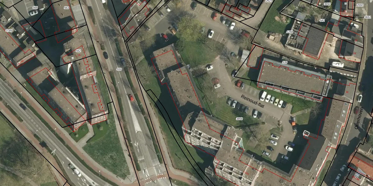 Reinoud-flat 13 is gelegen op kadastraal perceel STD00K3858. Deze kadastrale aanduiding is uniek en wordt gebruikt door het Kadaster om eigendomsrechten en andere zakelijke rechten vast te leggen. Het perceel maakt onderdeel uit van de kadastrale gemeente Sittard.