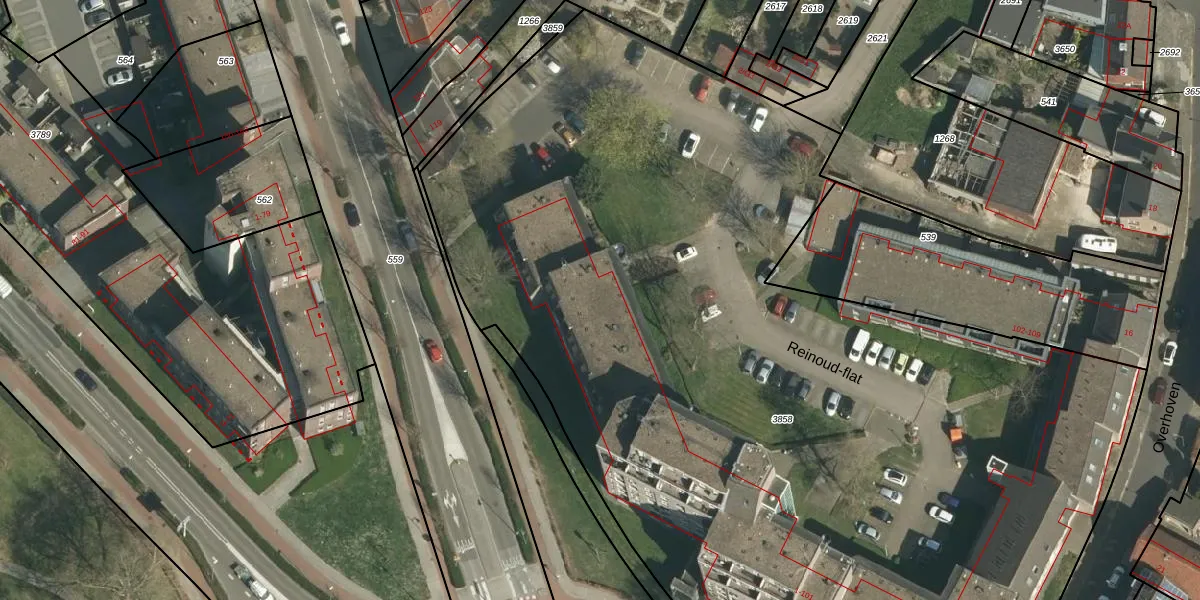 Het perceel waarop Reinoud-flat 14 staat heeft een oppervlakte van 8221 m². Dit is een zeer groot perceel. De perceeloppervlakte wordt geregistreerd door het Kadaster. Gedetailleerde informatie over de maten van dit perceel kunt u vinden in het rapport Kadastrale kaart met maatvoering van Reinoud-flat 14.