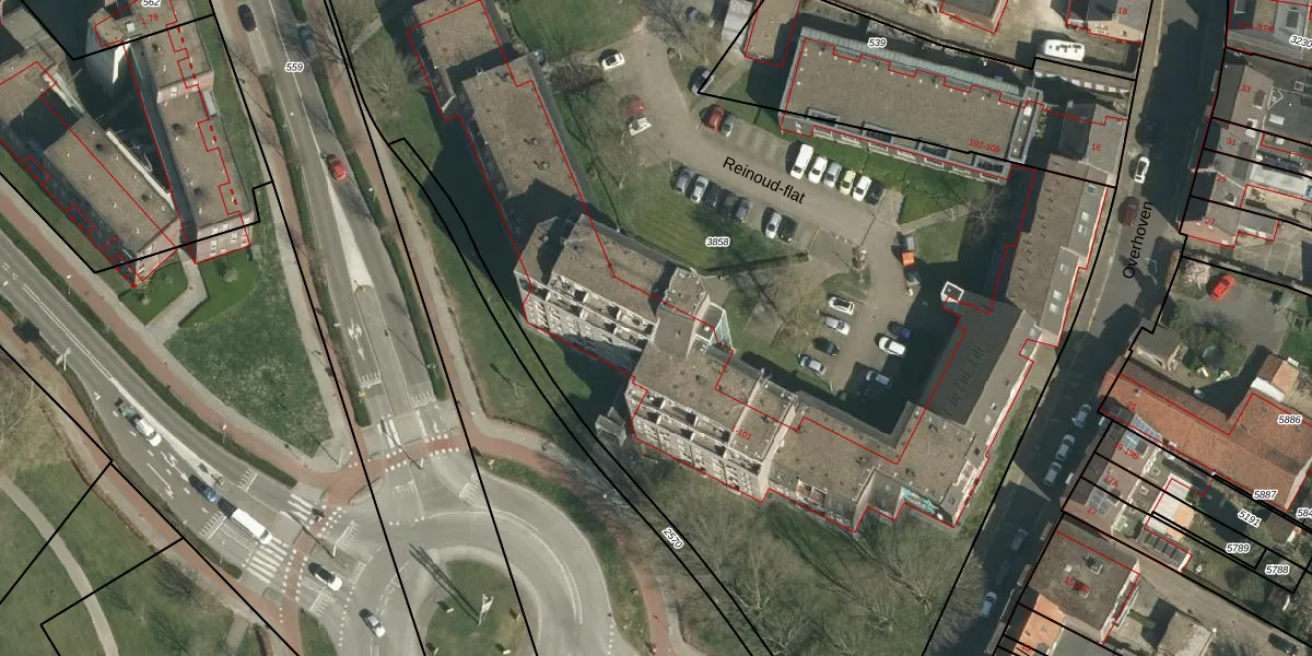 Het perceel waarop Reinoud-flat 58 staat heeft een oppervlakte van 8221 m². Dit is een zeer groot perceel. De perceeloppervlakte wordt geregistreerd door het Kadaster. Gedetailleerde informatie over de maten van dit perceel kunt u vinden in het rapport Kadastrale kaart met maatvoering van Reinoud-flat 58.