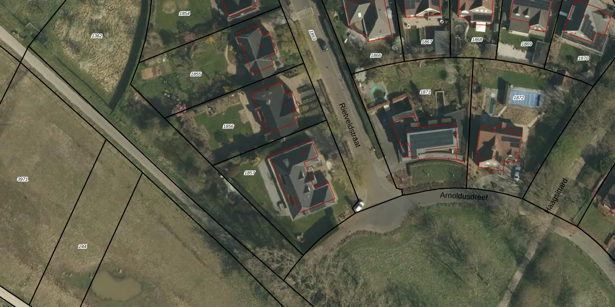 Rietveldstraat 13 is gelegen op kadastraal perceel STD00S1857. Deze kadastrale aanduiding is uniek en wordt gebruikt door het Kadaster om eigendomsrechten en andere zakelijke rechten vast te leggen. Het perceel maakt onderdeel uit van de kadastrale gemeente Sittard.