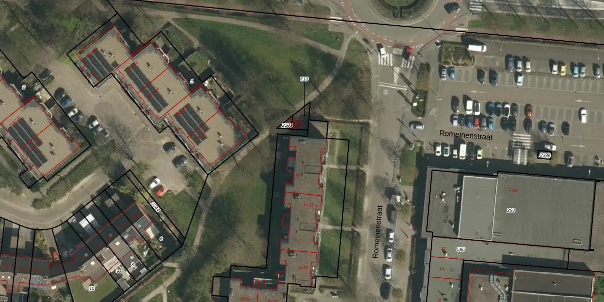 Het perceel waarop Romeinenstraat 5 staat heeft een oppervlakte van 1700 m². Dit is een zeer groot perceel. De perceeloppervlakte wordt geregistreerd door het Kadaster. Gedetailleerde informatie over de maten van dit perceel kunt u vinden in het rapport Kadastrale kaart met maatvoering van Romeinenstraat 5.