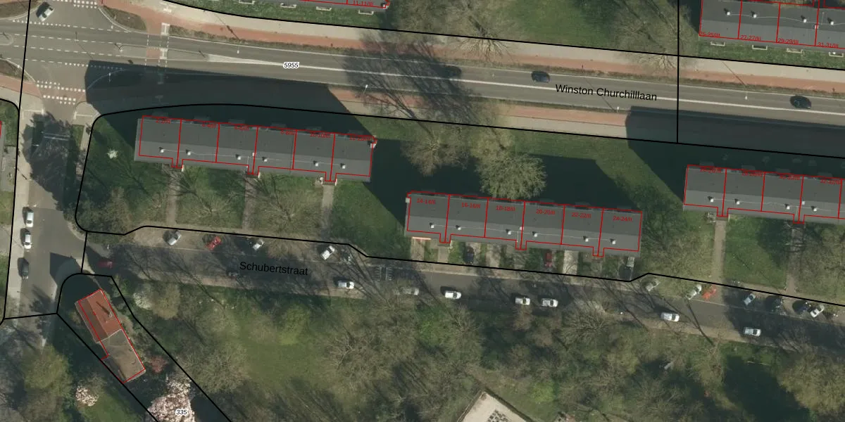Het perceel waarop Schubertstraat 14-I staat heeft een oppervlakte van 1,6 ha. Dit is een zeer groot perceel. De perceeloppervlakte wordt geregistreerd door het Kadaster. Gedetailleerde informatie over de maten van dit perceel kunt u vinden in het rapport Kadastrale kaart met maatvoering van Schubertstraat 14-I.