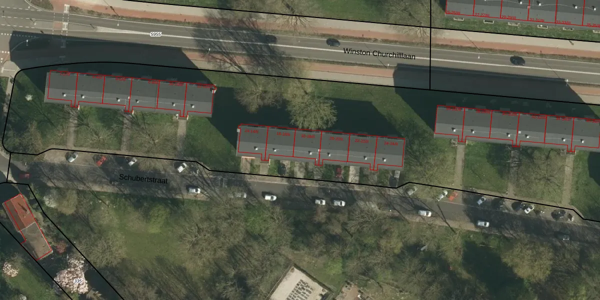 Het perceel waarop Schubertstraat 18-G1 staat heeft een oppervlakte van 1,6 ha. Dit is een zeer groot perceel. De perceeloppervlakte wordt geregistreerd door het Kadaster. Gedetailleerde informatie over de maten van dit perceel kunt u vinden in het rapport Kadastrale kaart met maatvoering van Schubertstraat 18-G1.