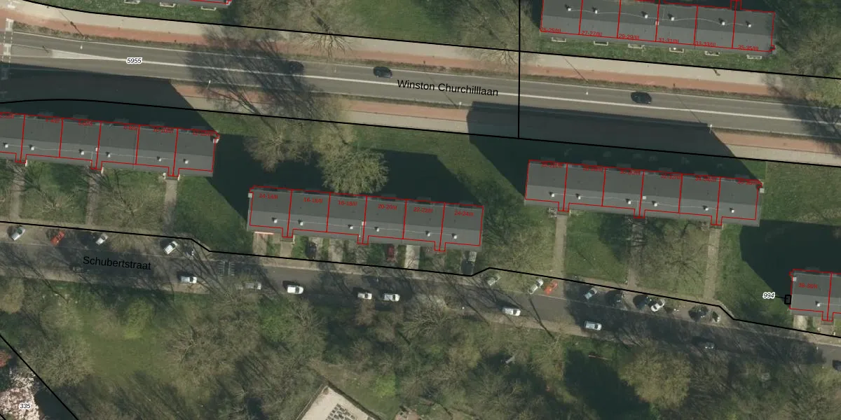 Het perceel waarop Schubertstraat 22-II staat heeft een oppervlakte van 1,6 ha. Dit is een zeer groot perceel. De perceeloppervlakte wordt geregistreerd door het Kadaster. Gedetailleerde informatie over de maten van dit perceel kunt u vinden in het rapport Kadastrale kaart met maatvoering van Schubertstraat 22-II.